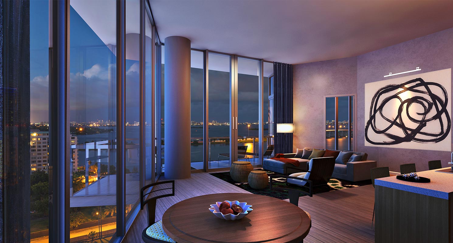 • Oversized terraces with sweeping views of Biscayne Bay, Miami Beach, and downtown skyline